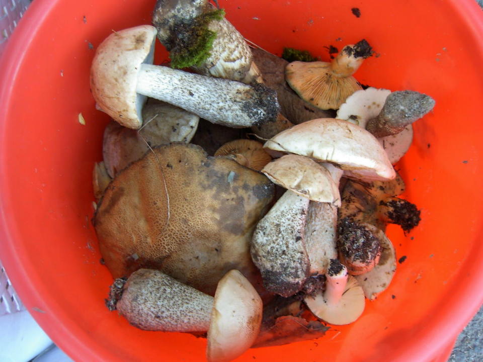 Вчера с мужем были в горах, порадрвало отсутствие клещей, на экопосту нас предупредили, что они уже дважды обрабатываль и клещей нет, приятно! Правда пробыли мы не долго чуть меньше часа. Полил дождь, ну мы, конечно подумали, что не размокнем, в городе жара.... но дождь был такой силиный с громом и молниями, все потемнело. В результате промокли полностью у мужа только берцы сухими остались, хорошо, что было во что переодеться! В итоге собрали немного подберезрвиков молодежи штук 12 и крепенькие взрослые, червивых почти нет., Рыжики примерно 2кг, маслята 5 штук. и непонятные для меня грибы, их в другую тему. В лесу большонство грибов старые или ооочень старые Мурена