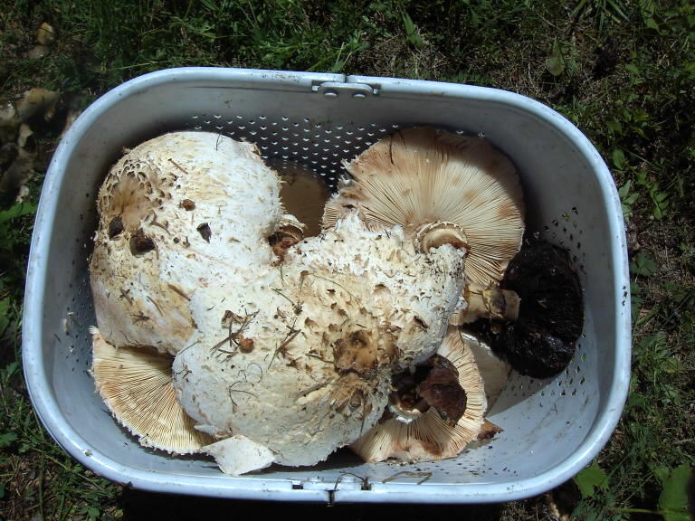 И немного грибов в первой корзине шампиньоны и зонтики.
