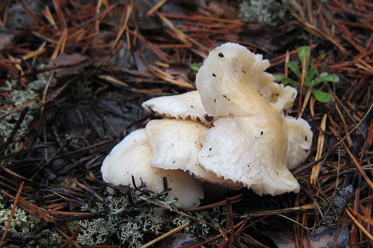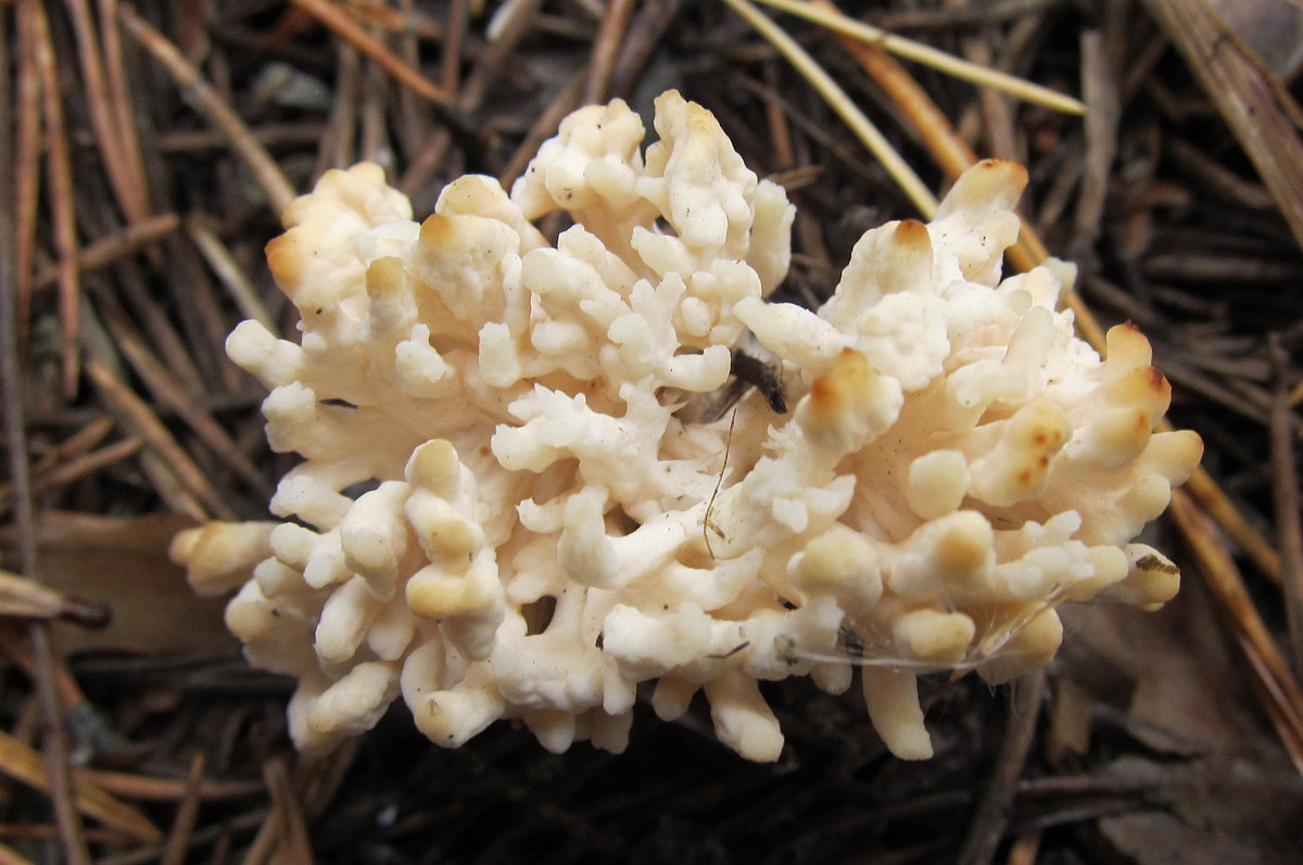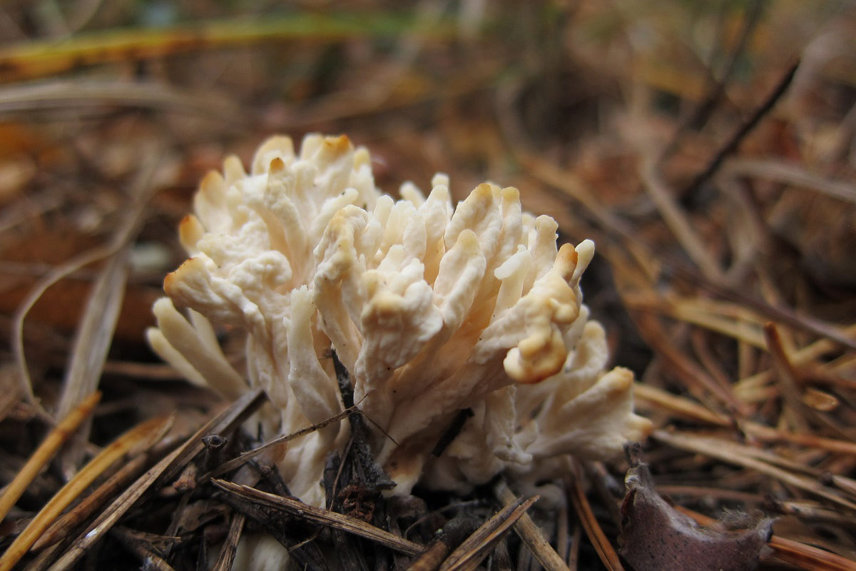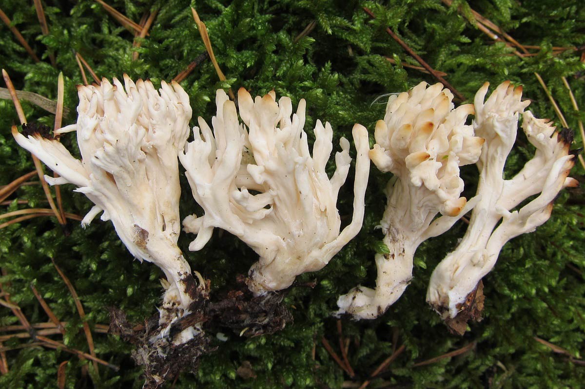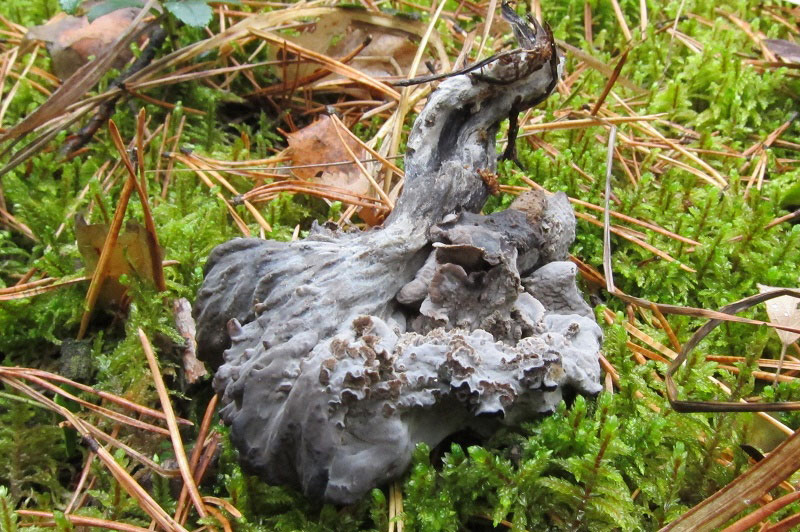 Cook написал: Открыл я тайну, встреченных весной засушенных "лопастников", это ворончик. Встретил вчера, правда всего пару, в одном месте... Не ошибаюсь, Craterellus cornucopioides? Ага, они! Cook написал: Интересная сыроежка, нашел всего в двух местах - семейку и парочку. Острая на вкус, кожица со шляпки вообще не снимается, такое впечатление, что пленки нет... Russula sanguinea Cook написал: Этого гигрофора нашел в единственном экз. H. hypothejus? Вроде похож, но твой как-то помассивней. Покопаюсь ещё в них. Cook написал: Семейка рогатиков, росли на погруженных в землю древесных остатках, на вкус пресные... Клавулина, видимо, Clavulina coralloides. |