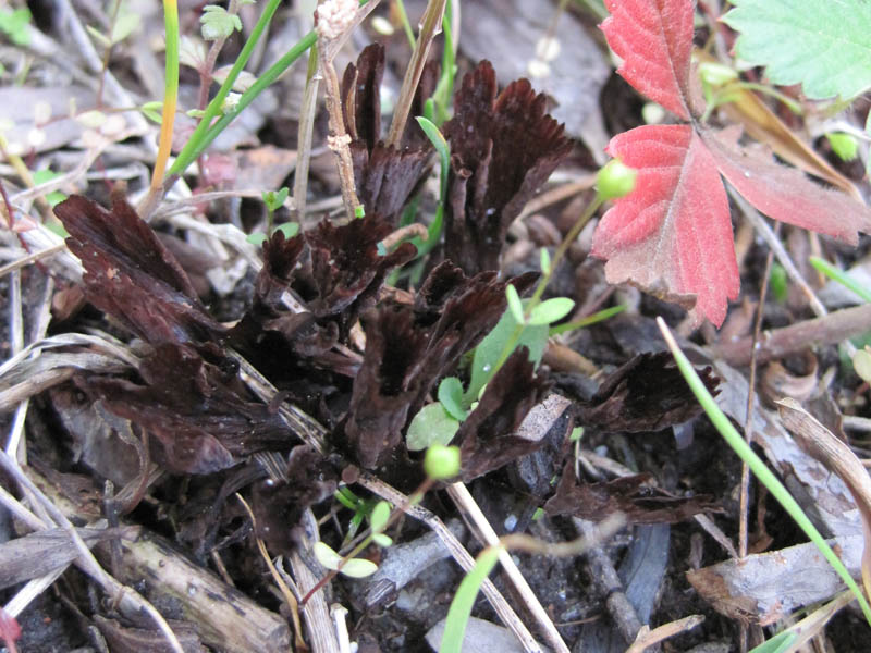 и ростут какие то чудеса толпами.... Полипоровое... ( по крайней мере не пластинок не трубочек я не нашла.) И цвет впечатлил.... фиалковый. |