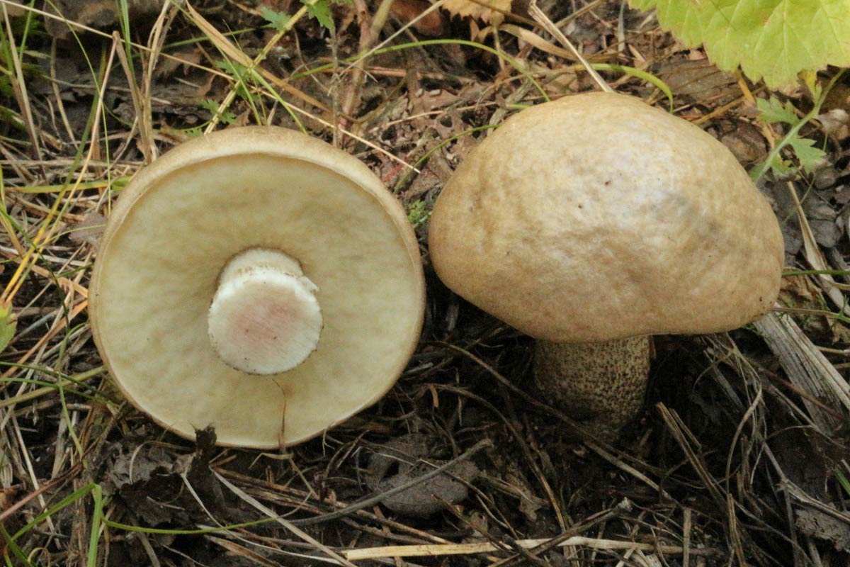 Жестковатый по фото в сети потемнее и более массивный, с толстой ногой, как у боровика. И да, синеватость требуется. |