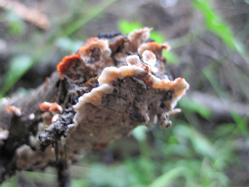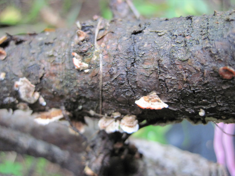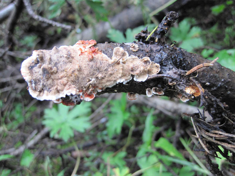 Фиолетовый, лохматый, трутовик. НА поваленой ели у реки.
