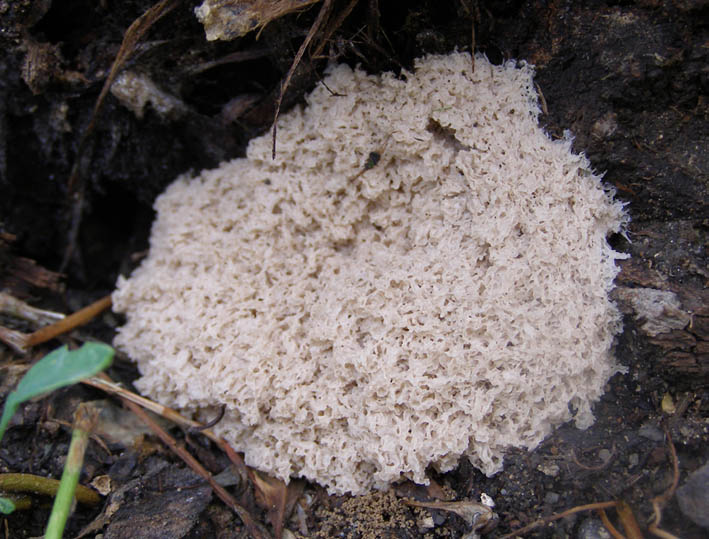 Если не миксомицет, то это может быть Дрожалка фукусовидная (Tremella fuciformis) в зрелом возрасте.