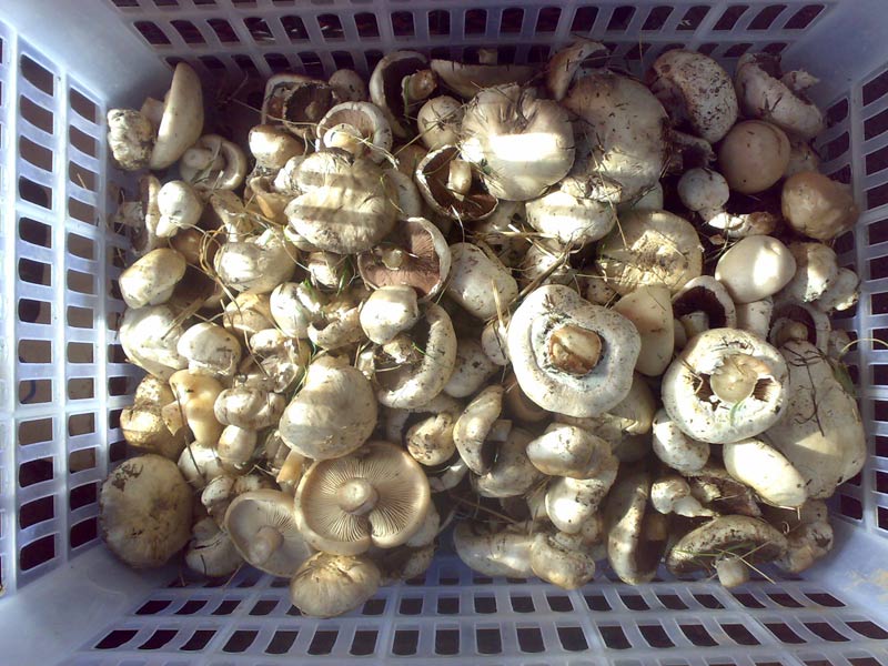 А вот мой урожай за час со стороны Каскелена, немного подальше. В основном шампиньоны (три вида), попалась и синеножка, в небольшом количестве.