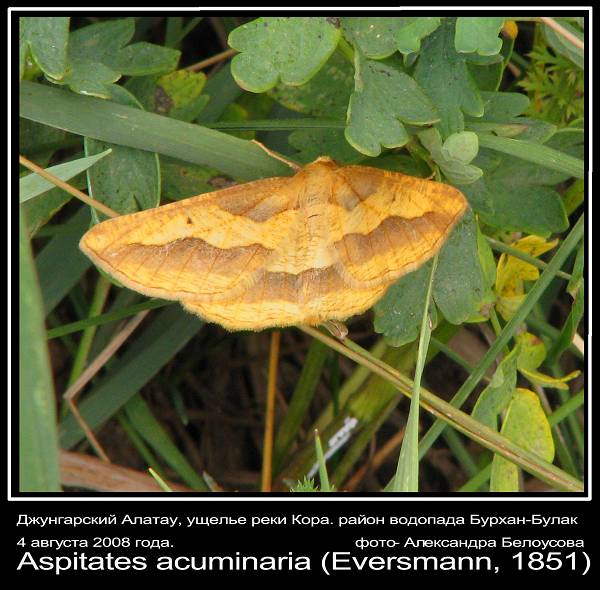 http://fungi.su/f...c05356.jpg по этой фотографии - Aspilates schurowskyi (Аспилатес Щуровского), редкая позденелетняя горная пяденица скорее эта- Aspitates acuminaria (Eversmann, 1851) |