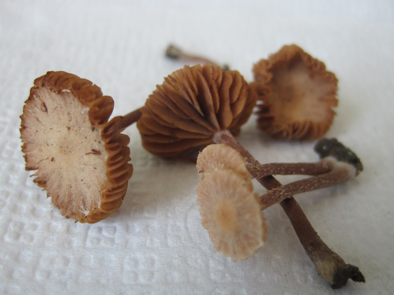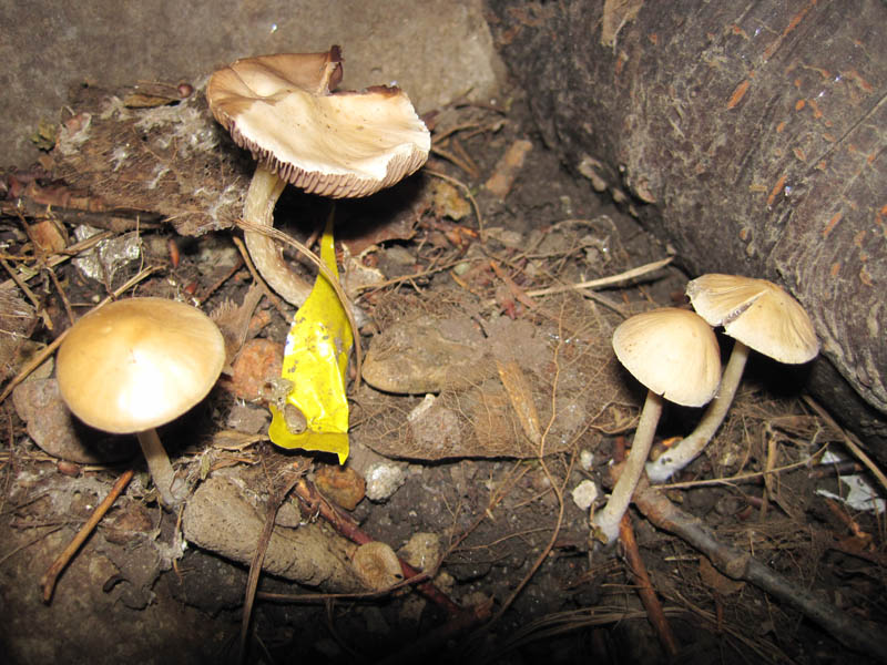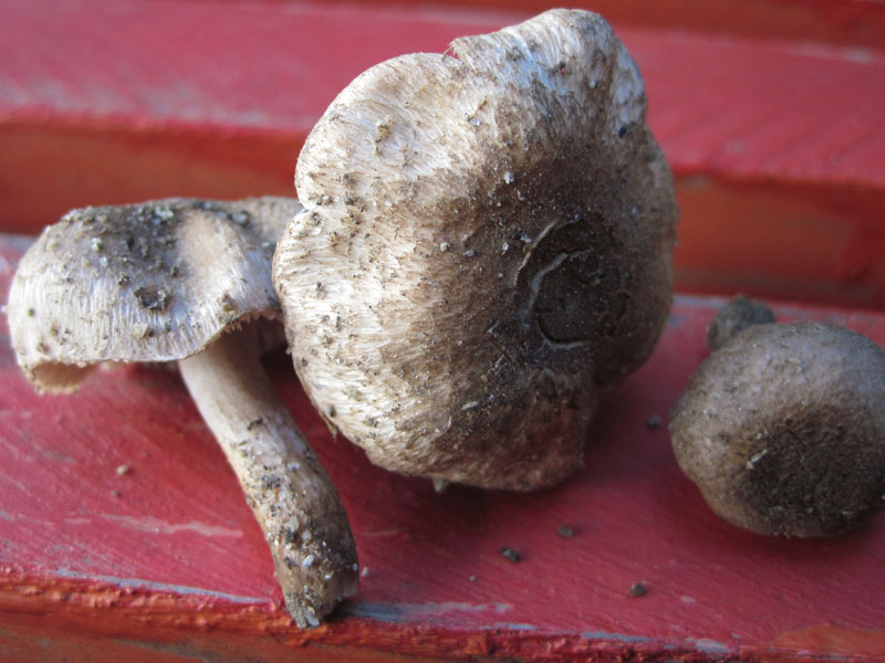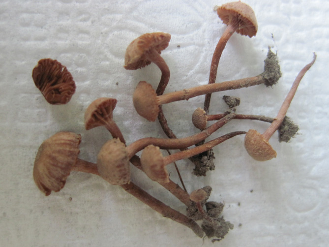 Но не на ту же. Запах горьковатый и плесневелый, пластинки сероватые, и если леопита была такая \"хрусткая\" как пластмасовая, то эти скорее резиновые. >Мицена? >Можно по-подробней, где, с кем и как. (и размер) Размер шляпки самого крупного около 4мм в диаметре. Высота ок 1,8 см. По близости не расло ваще ничего. По крайней мере в 2х метрах. Пустой газон возле отмостки дома. Там даже травы почти нет. Через тротуар метрах в 4 тополь пирамидальный и карагачи, на том же газоне дальше остатки ясеня, недовырубили. Росли кучкой около 10 грибов на площади примерно 25см в диаметре. |