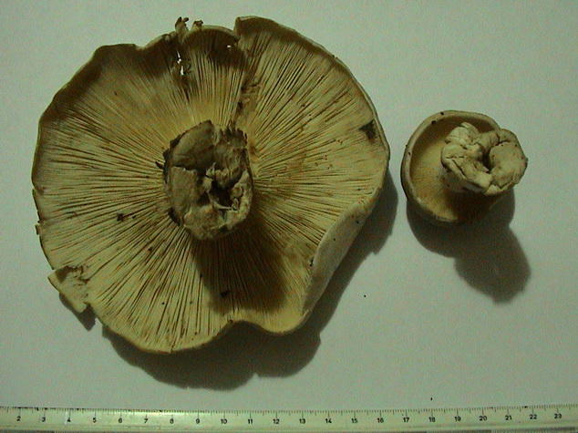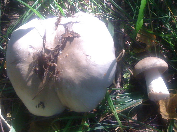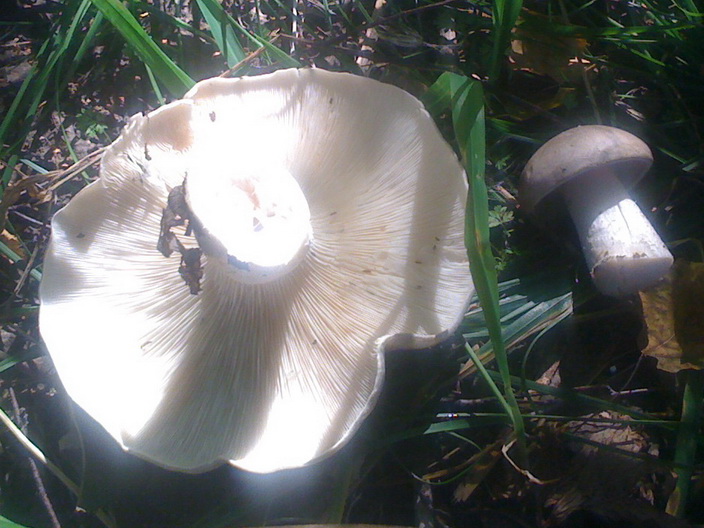 Два вторых. Или шампиньон августовский http://fungi.su/a...cle_id=241 или лесной http://fungi.su/a...icle_id=48, оба съедобны. Последнее, я бы сказал похоже на рядовку фиолетовую, http://fungi.su/a...cle_id=673 вот только в это время я ее у нас не встречал, но все может быть. Хотя, возможно, и паутинник. |
