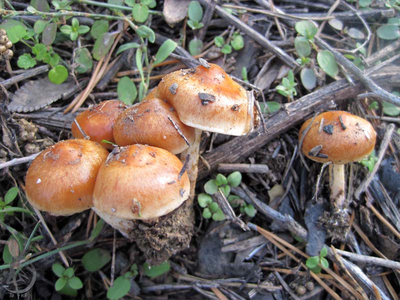 Похоже на Hypholoma sublateritium, но он растетв лиственных лесах