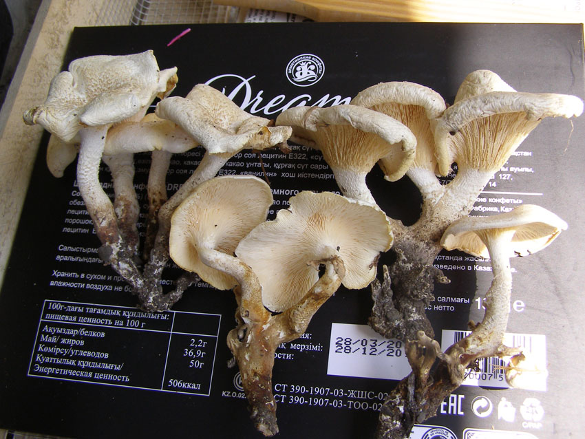 27 июля ходили в район санатория Аккайын, в природный парк за ежевикой. Ягоды много, но собирать нудно, зато зимой приятно с чаем есть ежевичное варенье. Из грибов встретил постаревших пилолистников тигровых и семейку ксиларии полиморфы под старым пнём клёна.