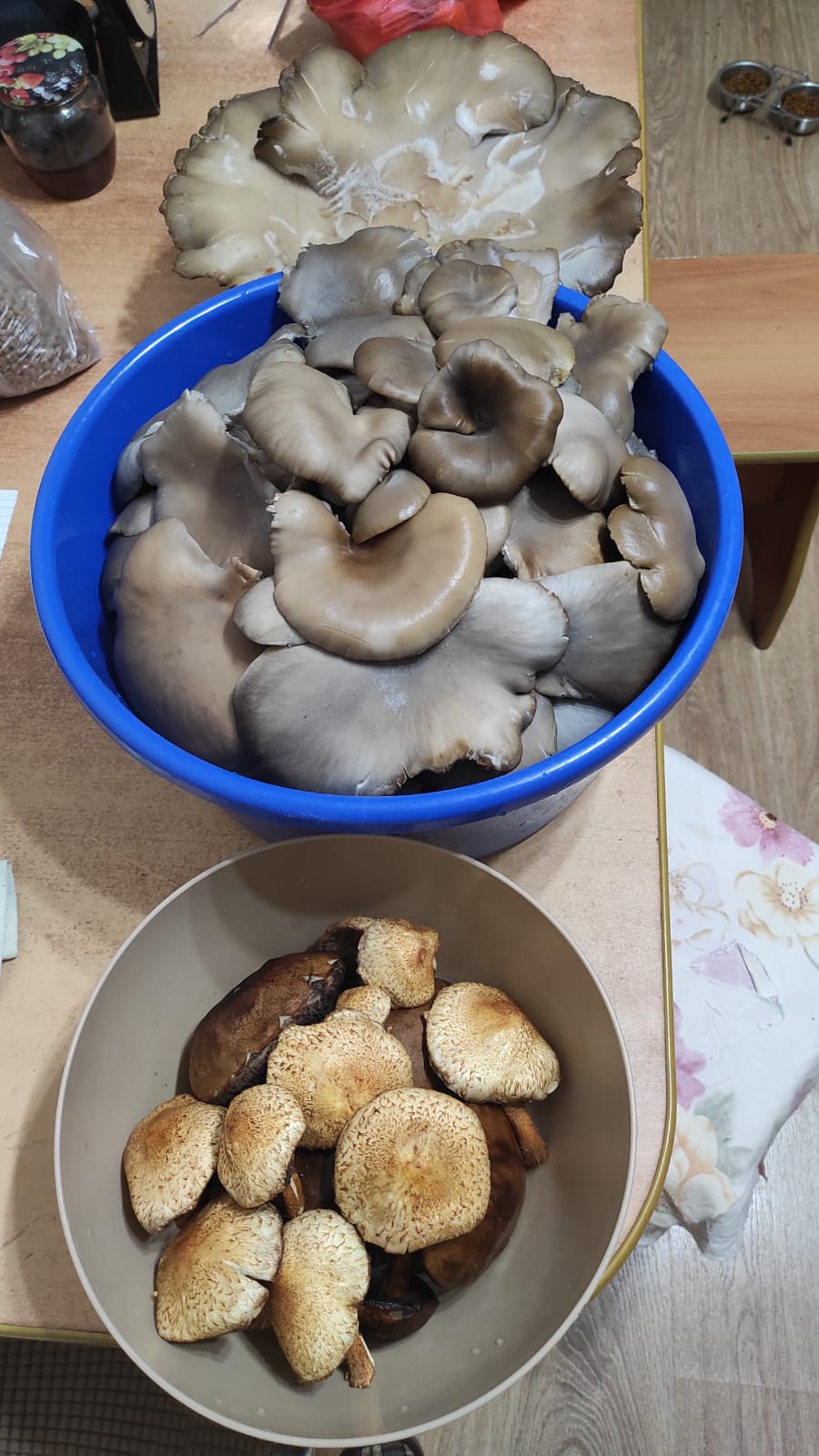 Всем, добрый день. В субботу 14.10.23 решил после обеда съездить на тихую охоту. Погода была хорошая, правда дул ветер. Погуляв по лескам в районе Малотемофеевки удалось набрать немного грибов. Цель была вешенка, остальные грибы просто попались по дороге.
