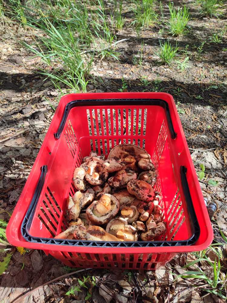 Был вчера в Акколе, лес влажный, но свежих подгруздков нет. Всё старые, да гнилые. Собрал ведёрко лисичек. Из всех грибов свежие есть только лисички.