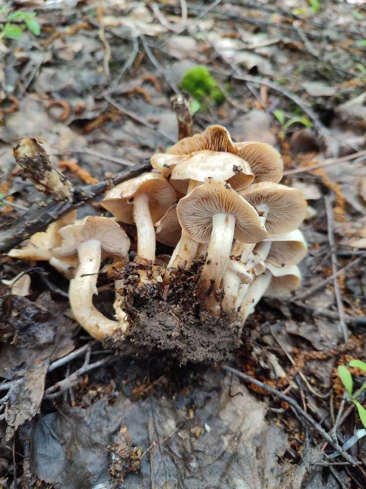 Всем добрый вечер! Неудержался сегодня несмотря на дождь, пробежал березняк возле аэропорта. Промок. Лес сырой насквозь, к концу следующей недели гриба должно быть много. Полез подберезовик, много мелкого размером с ноготь. По всему лесу массово кроме подберезовика, повылазило много другого гриба, на фото ниже. Похож на гебелому, кто знает подскажите.