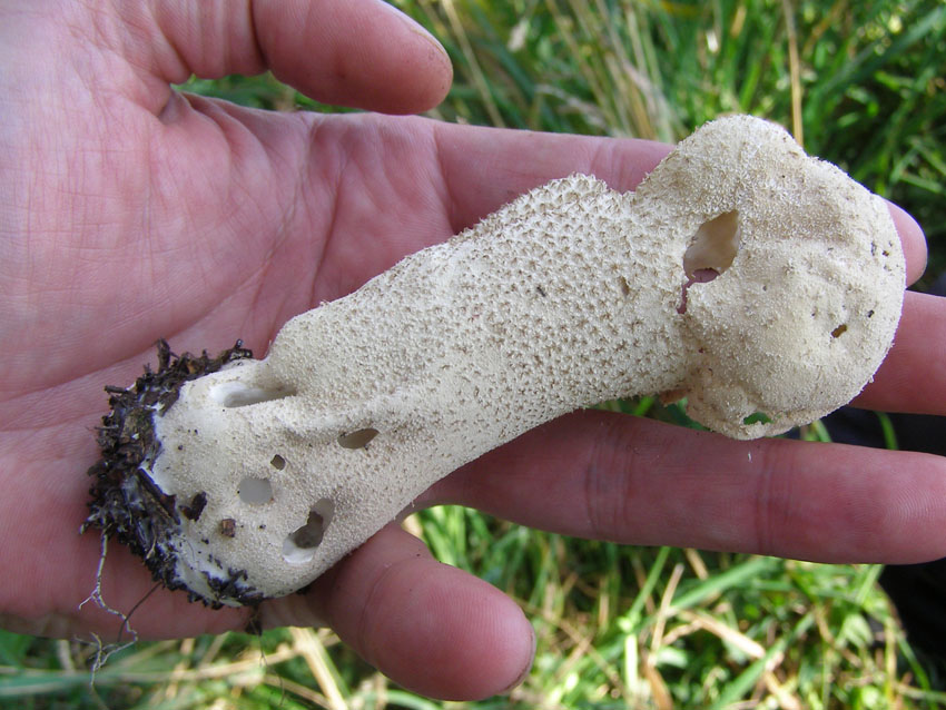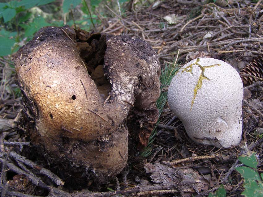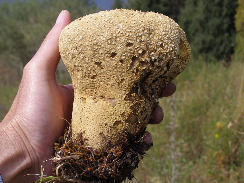 30 августа. Отдыхали и фотоохотились за грибами в Кимасаровском ущелье. Засуха второй половины августа заметна везде. Тем не менее нашёл Головоча мешковатого в ельнике. Первый экземпляр успел перезреть. Второй экземпляр давно созрел, но споры не выбросил. Затем нашёл очень крупного в стадии спороношения, из щели на верху гриба потоком высыпались споры. Единично встречались шампиньоны, грузди, паутинники и сыроежки. На ужин собрали немного грибов, их нужно искать вдоль русла речек и у родников.