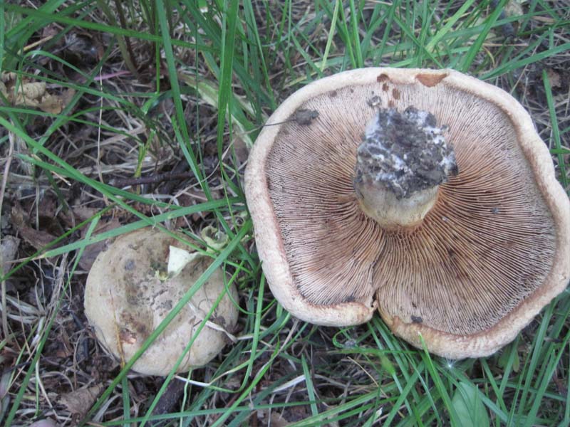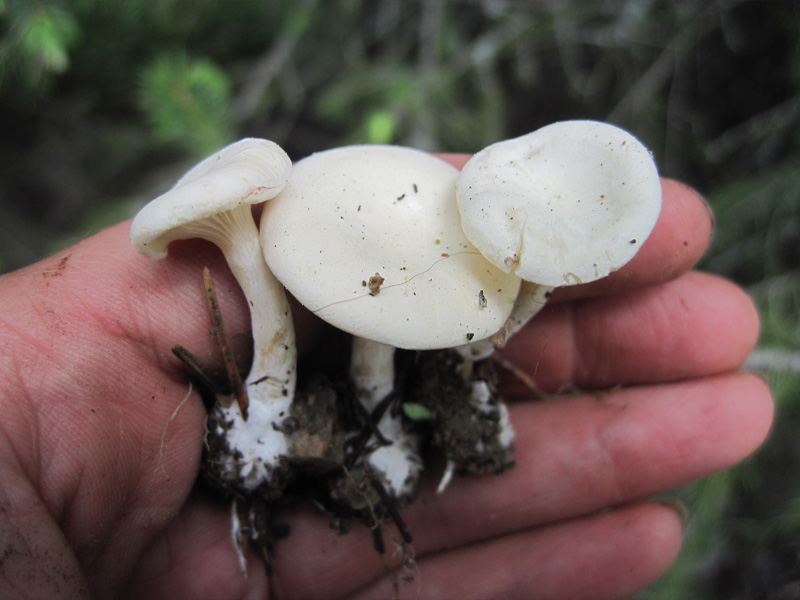 http://www.fungi....icle_id=60 Возможно, говорушка дымчатая форма белая или леукопаксиллус белоснежный, если мякот жесткая, то второе. Хотя для него может быть рановато http://www.fungi....icle_id=70 http://www.fungi....cle_id=109 |