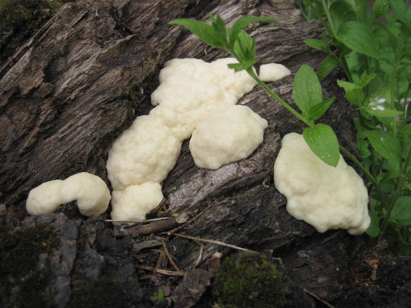 ежовиковое. пыльная подушка на сосновом стволе а это я ее нечаянно пальцем задела :o |