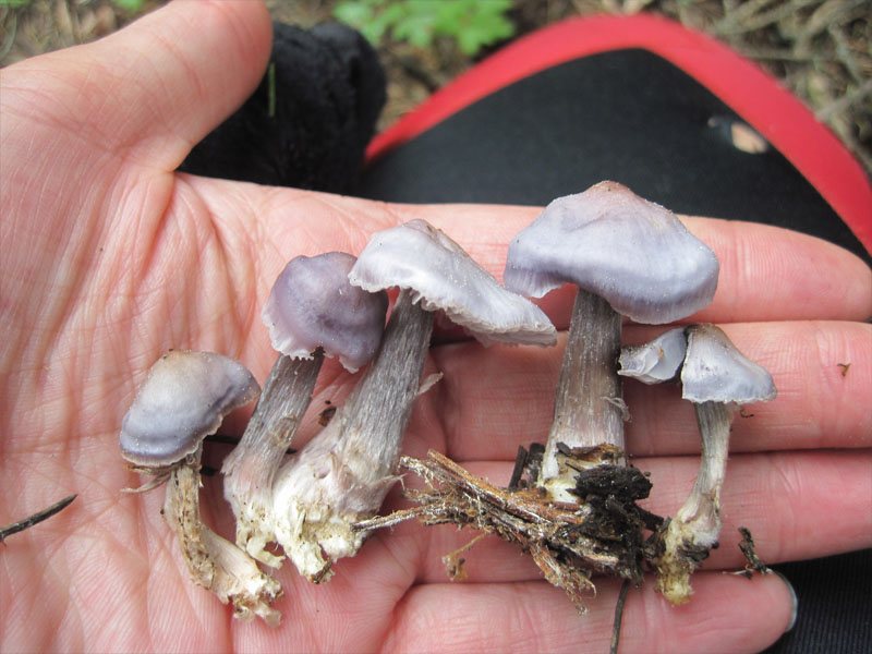 мелкое и фиолетовое не знаю вешенка чтоль на пне. |