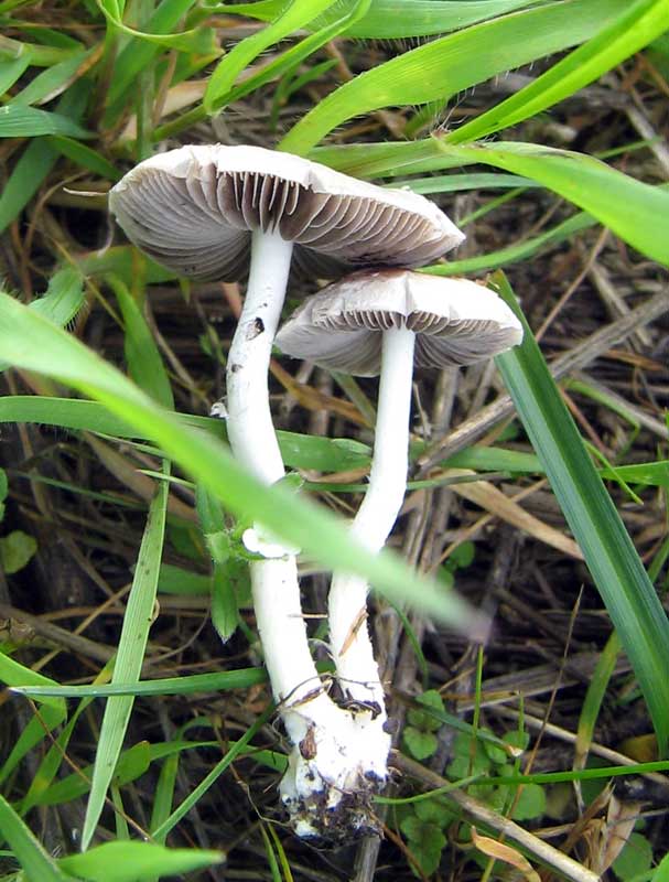 http://fungi.su/a...cle_id=179 и псатирелла серобурая http://fungi.su/a...cle_id=615 (на фото) Вот ее сейчас полно в посадках, садах и даже на свалках. Не смотря на съедобность, я ее никогда не собирал из-за хрупкости. Проверял подкарагачники - еще нет, хотя в черте города уже появились. |