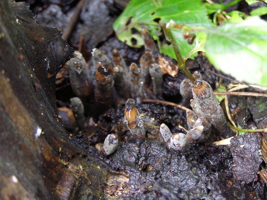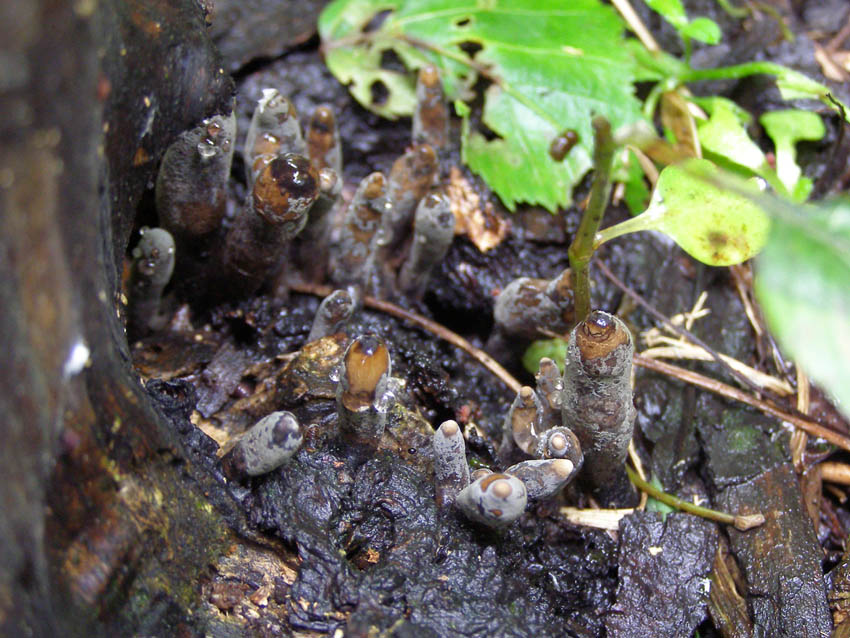 Ксилария многообразная. Начали прорастать молодые грибы у основания гниющего клёна. Арфей, если интересно, то могу сводить. Растут рядом, в Турксибе, в пойме р. Весновка.