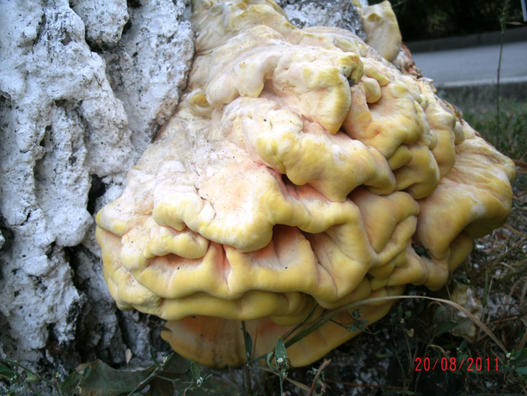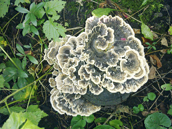 Эти трутовики росли на стволе погибающей яблони, предположительно дедалеопсис трёхцветный, а может я ошибаюсь. Послал фото в раздел грибы августа.