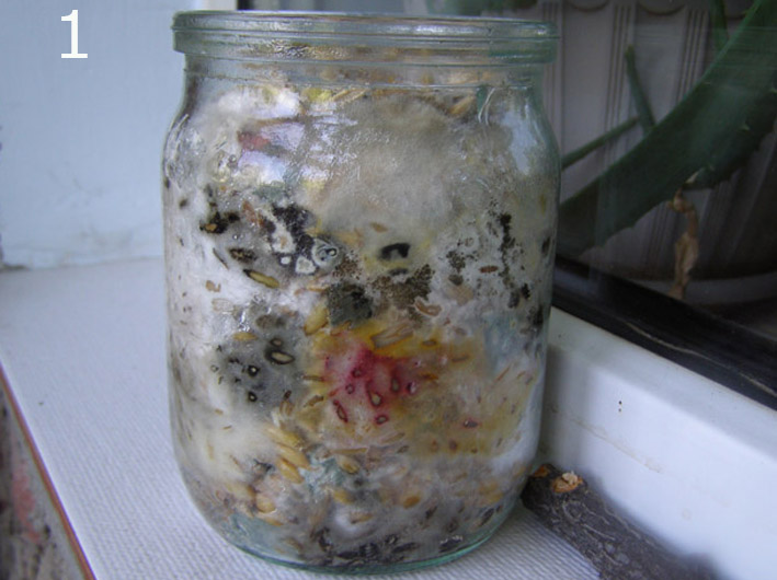 А банки у вас не закрыты? Надо их прикрывать либо марлей в несколько слоев, либо тканью, иначе споры плесени как попадают в банку из вне, так и из банки вылетают наружу.