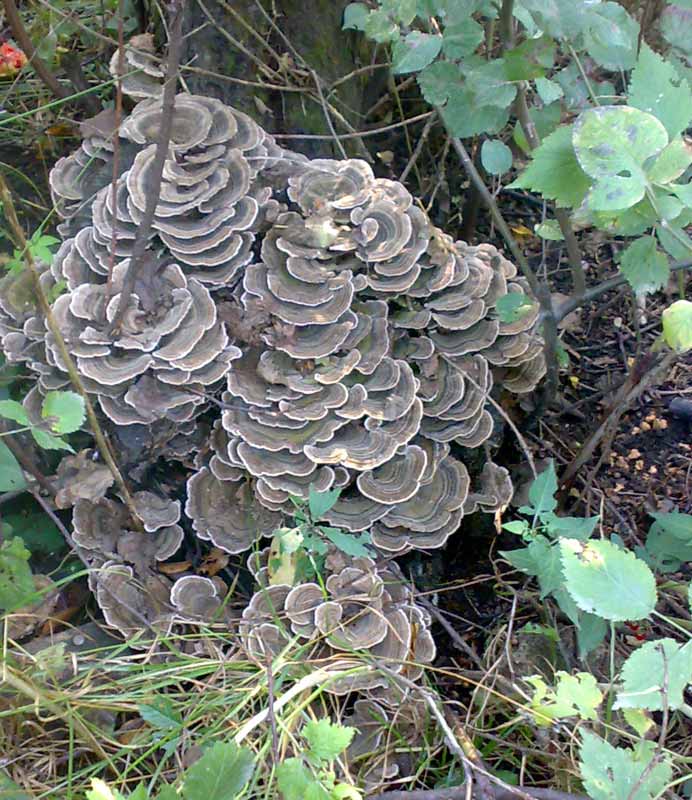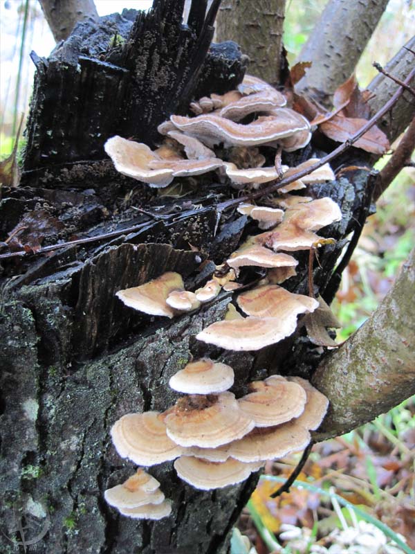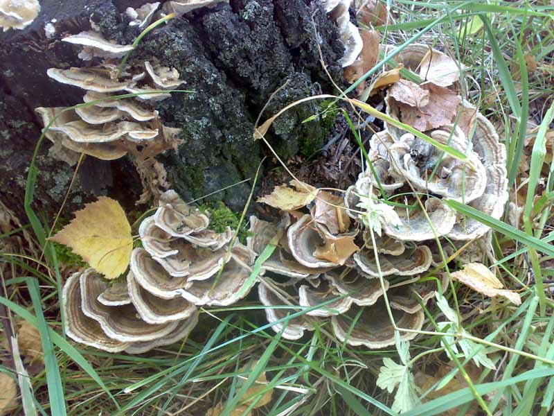 А на соседнем пне что-то из кориолусов, тоже яблоня
