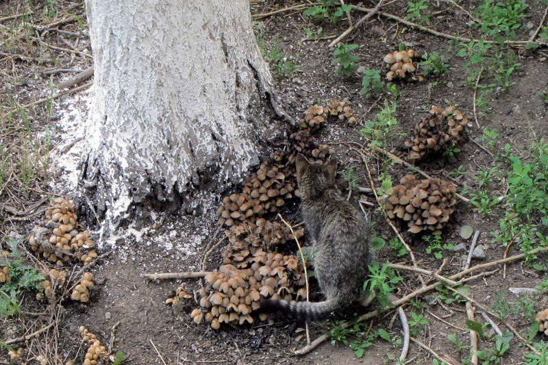Сегодня с балкона наблюдал, как кот поедает шляпки навозников, подумалось - то ли гурман, то ли жизнь заставила...)