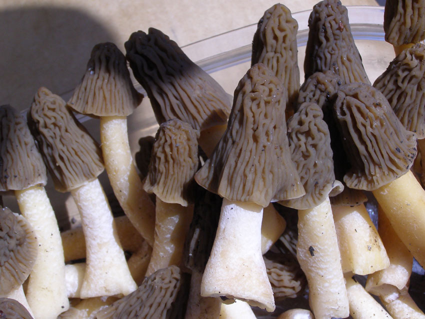 Попалось 3 степных сморчка. Что-то им там не растётся. |