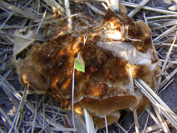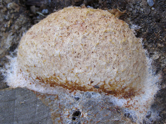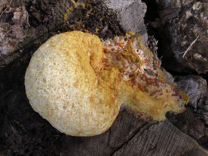zina написал: этот, со спорами, может фулиго гнилостный (описание здесь например http://mycoweb.na...ptica.html ), или что-то близкое, слизевик, а на пне тополя может быть трутовик лисий inonotus rheades (inonotus в переводе "волосатая спина") Пожалуй вы правы. Это трутовик лисий, вот ещё два фото |