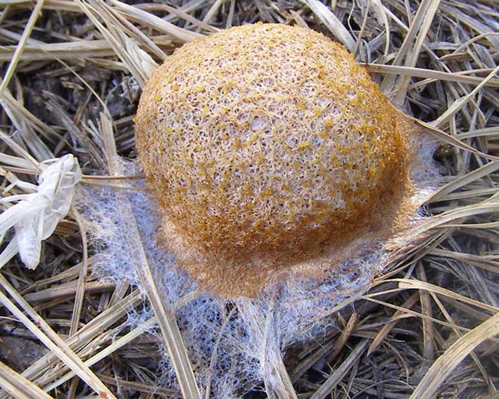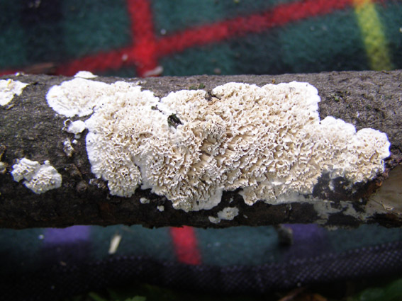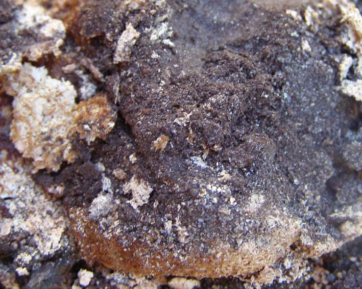 этот, со спорами, может фулиго гнилостный (описание здесь например http://mycoweb.na...ptica.html ), или что-то близкое, слизевик,