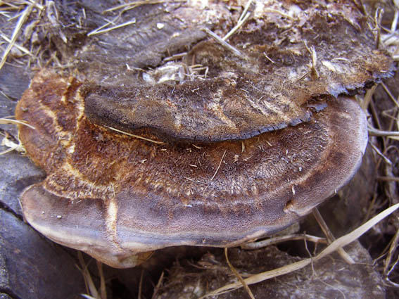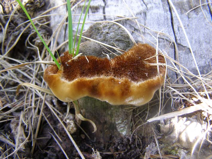 а на пне тополя может быть трутовик лисий inonotus rheades (inonotus в переводе "волосатая спина") |
