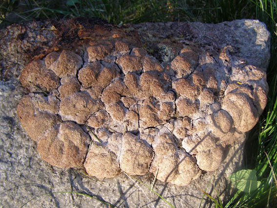 этот, со спорами, может фулиго гнилостный (описание здесь например http://mycoweb.na...ptica.html ), или что-то близкое, слизевик, Занес его в каталог как фулиго гнилостный. Растут где попало, на пнях, а на камне была целая колония, но уже перестарков. |