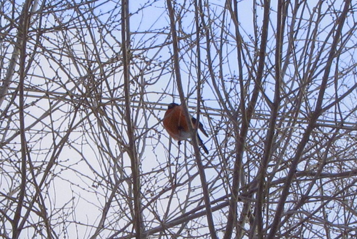Сегодня весь вечер под окнами болтались стаи свиристелей,а один потом так и остался ночевать за "копной" снега...