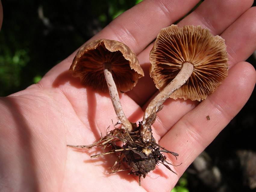 татьянка написал: 1Пролистала каталог грибов на сайте, подобных не нашла. Росли семейкой в траве рядом с елью. Ножка волокнистая, напоминает энтолому только плотнее. Шляпка бурая с бугорком. Запах грибной 2 эти росли у корня ели 3 паутинник с очень слизкой шляпкой это многообразный? 4 эти грибы похожи по цвету на гриб кошмаркина, только форма другая, может они и есть? 1. Это меланолейка, вид не скажу, наверно, вот эта же. Но меланолейки все съедобны. 2. Псатиреллка какая-то. 3. Либо он, либо изменчивый. 4. Да, похоже, белосвинуха и есть. |