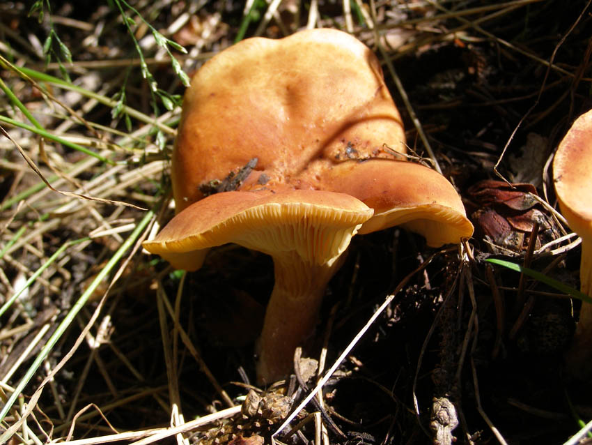 danil kim написал: А этот гриб - Млечник каштаново-красный? Фотографировал 9 июля на Альпийской розе в БАУ. Нет, это говорушка. Скорей всего Clitocybe gilva. |
