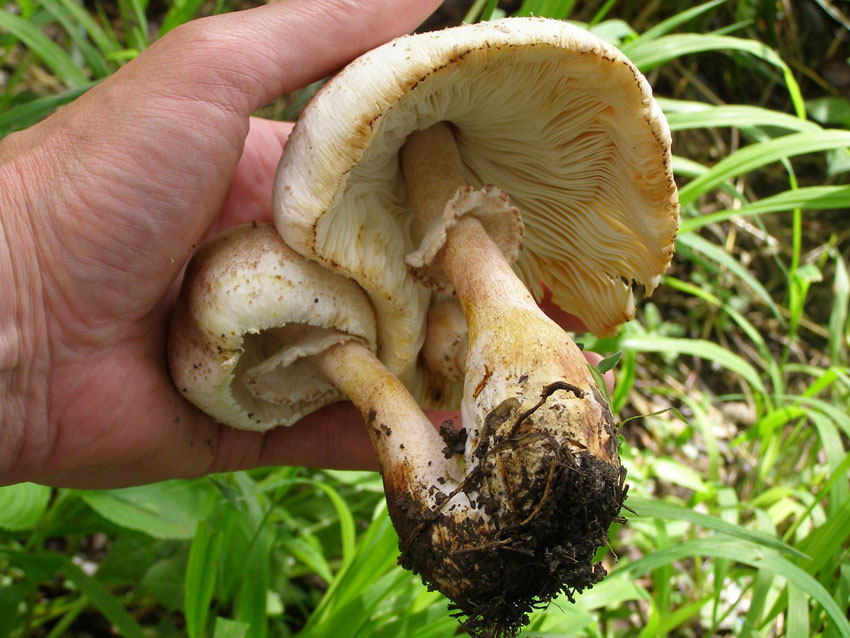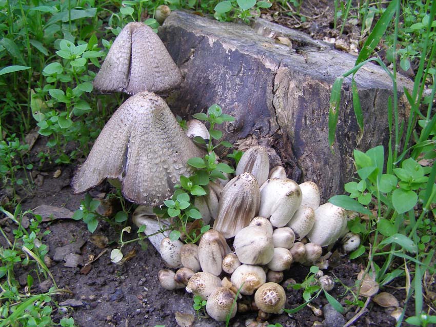 На пришкольном участке, на месте тополиного пня, выросли грибы - похожи на Вольвариеллу шелковистую, смущает юбочка на ножке. Её у вольвариеллы вроде бы недолжно быть. Завтра соберу остальных и приготовлю что-нибудь вкусное. Гриб довольно редкий и встретился мне только во второй раз.