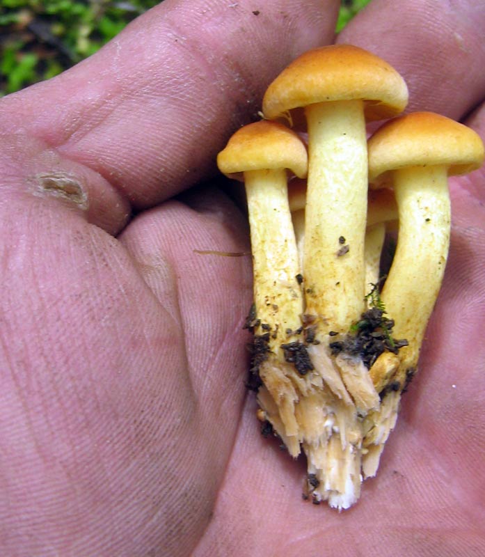 Наткнулся на кучку ложноопенка сернисто-желтого http://www.fungi....icle_id=61 Странно, вэтом году его никто не срезал. В прошлом нашел на том месте одни ножки. Вот кому-то жареха обломилась1 Он горький, как хина! Где-то читал, о том что его употреляют в пищу последлительного вымачивания и неоднократного отваривания. А остальные грибы смотрите в альбоме Грибы 2010, Июнь http://fungi.su/p...lbum_id=61 |