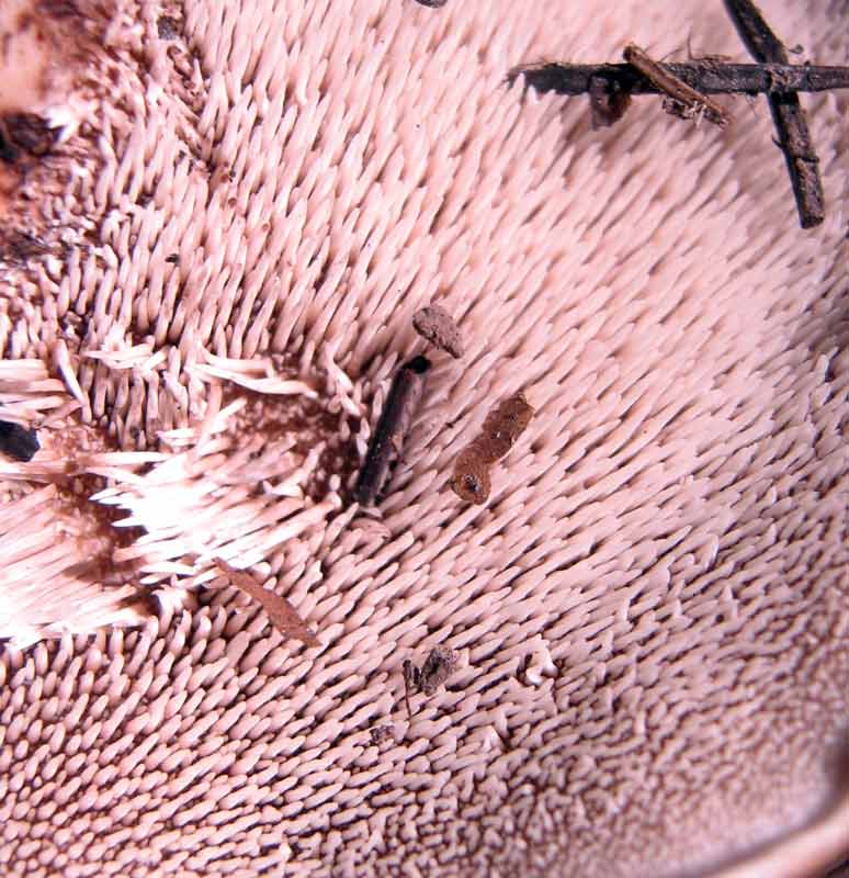 И еще тогда мне попадался какой-то болет, темно-синего цвета. Тогда мне его определили, как сатанинский гриб ( о сатанинском грибе позже), но он красноватого, а не синего цвета. Теперь каждый год в это же время езжу туда, в надежде встретить их вновь. Они мне не попались, но попался довольно редкий для наших гор Sarcodon badium - Ежовик коричневый. Очень похожий на съедобный Ежовик пестрый гриб, отличающийся неприятным запахом и неудалимой горечью гриб. В качестве эксперимента пробовал его вымачивать 3 суток - горечь не исчезла |