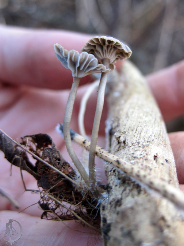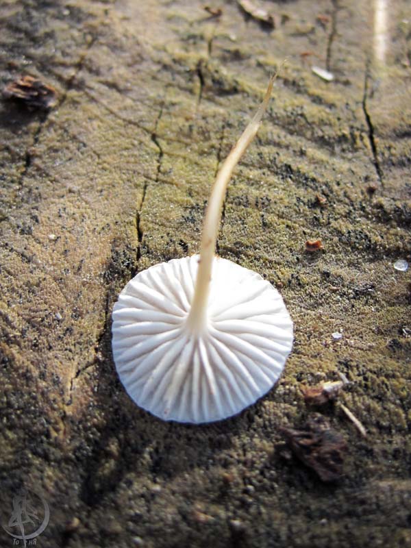 Судя по форме шляпки - marasmius (на фото вряд ли видно) |