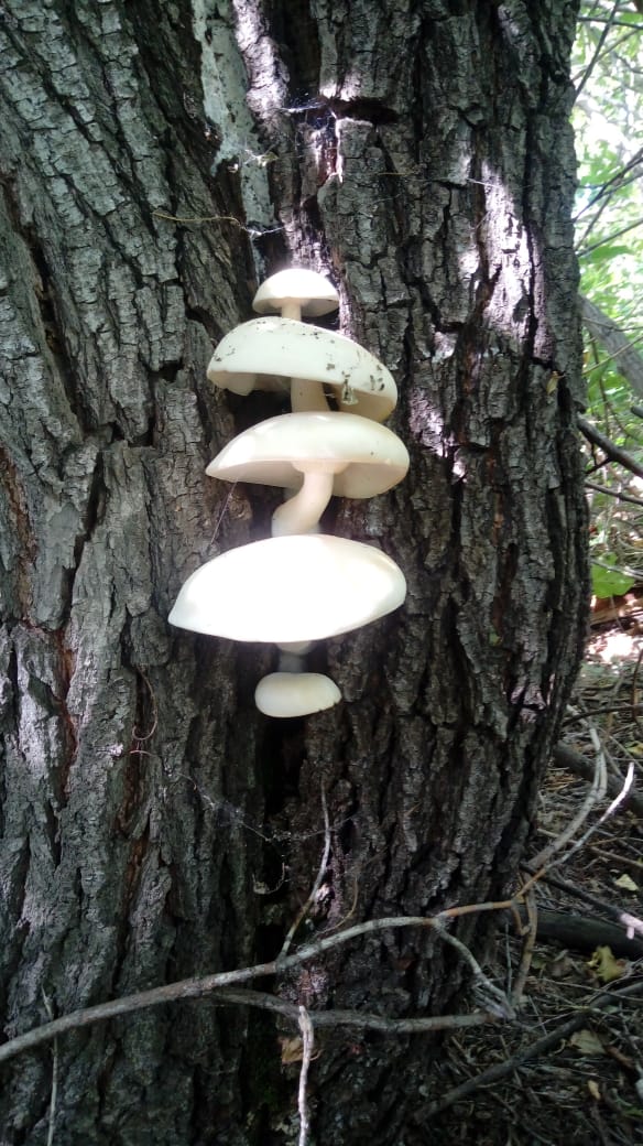 Да, похоже на вешенку, но далековато, сложно разглядеть какая именно. Могут быть варианты - вешенка легочная, вешенка дубовая, либо обыкновенная так выцвела. |