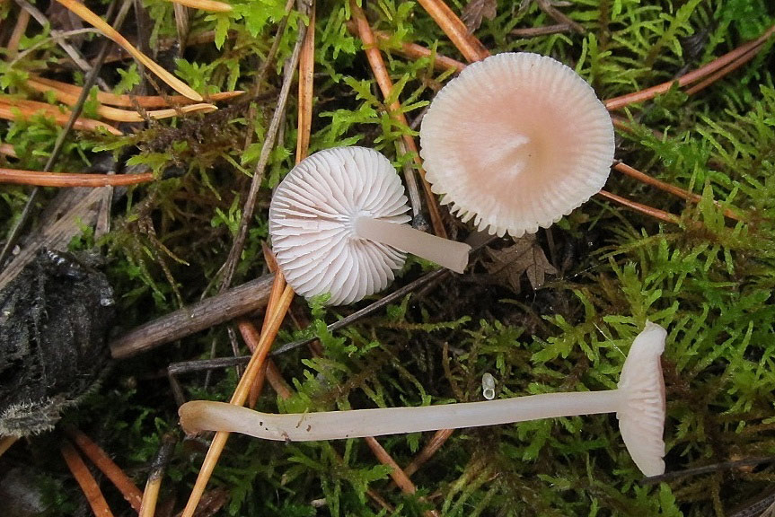Cook написал: 1.Опушка соснового бора, субстрат - сырой мох. Запах невыразительный, диаметр шляпки до 1.5 см, росли поодиночке и семьями, массово. 2.Там же, единично, всего три штуки. Запах аммиачный, диаметр шляпки до 1.5 см. 3.Там же, единично. Запах невыразительный, диаметр шляпки 1.2 см. 4.,5.Там же. Запах невыразительный, диаметр шляпки 1.5 см, единично. Первая скорей всего и не мицена, пока не придумал. Вторая похожа на Mycena filopes, правда запах у нее указывается йодовый. Последние три мне напоминают Mycena pura. |