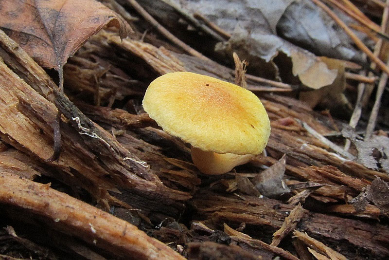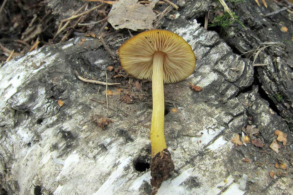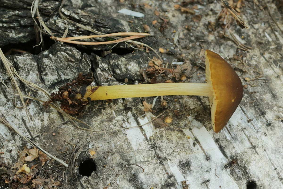 Какой-то желтый плютей, ни разу не встречал с такой коричневой шляпкой, размер шляпки 2.5 см