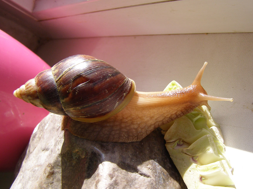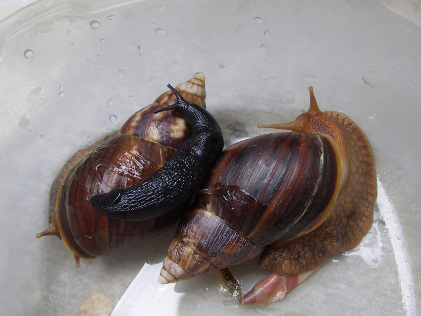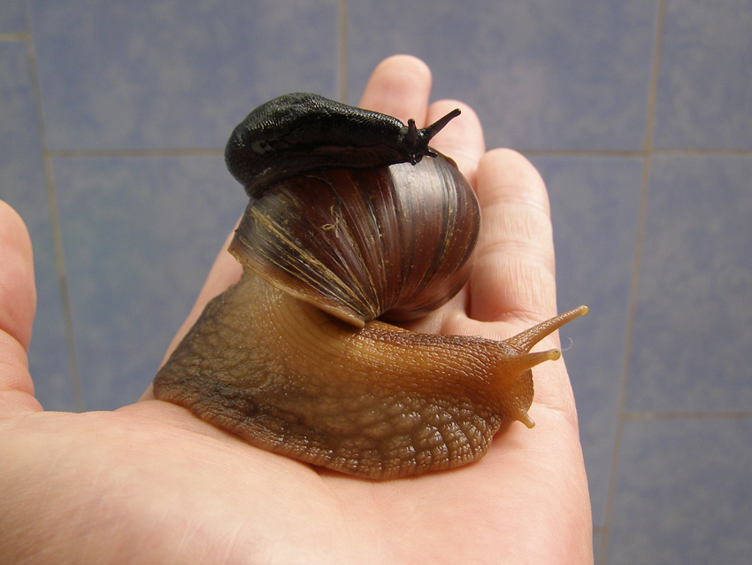 В моём террариуме живут Ахатины, подселил к ним слизня Туркомилакса.