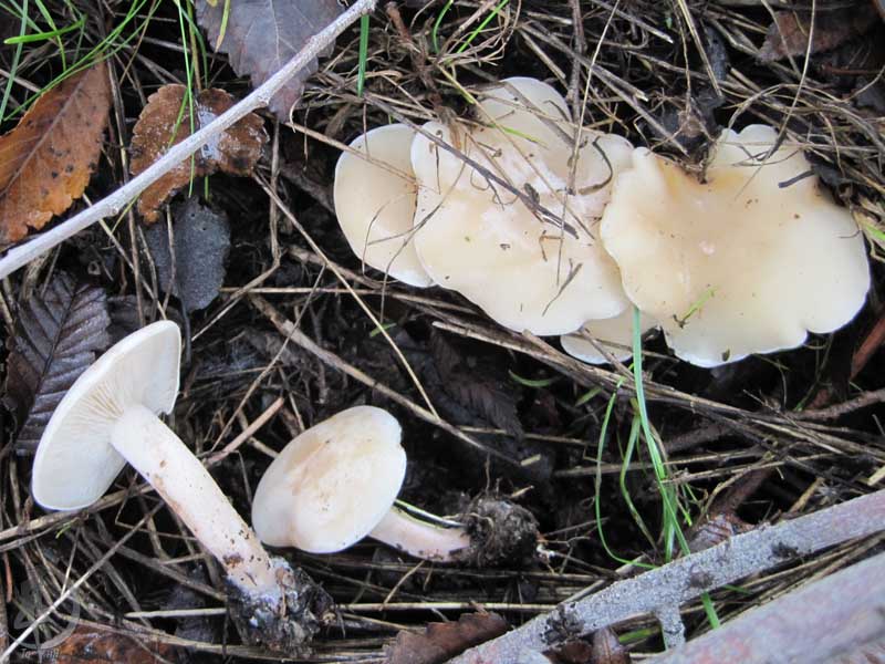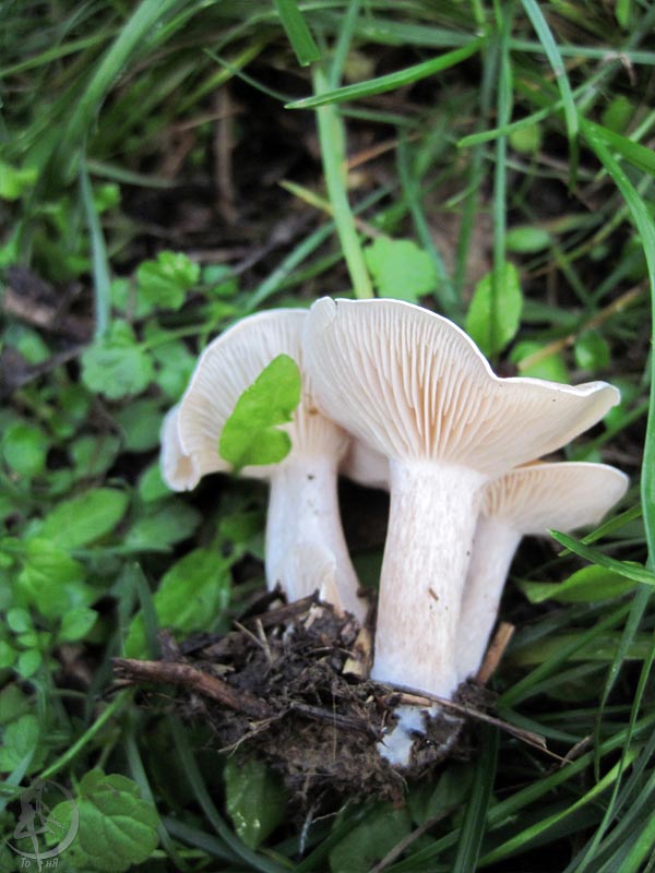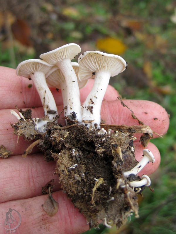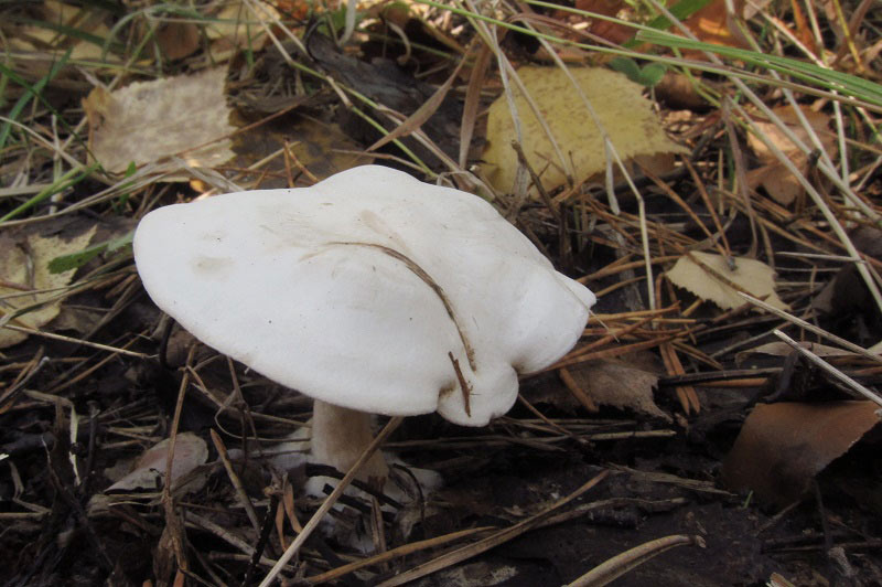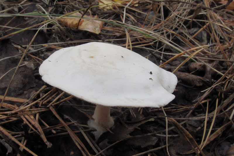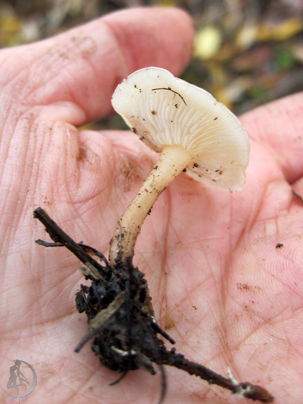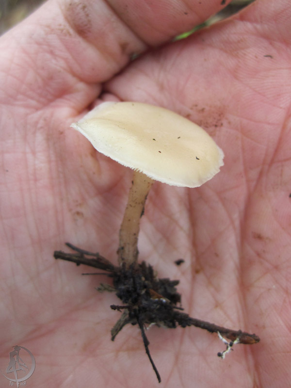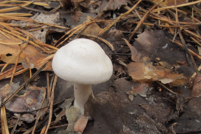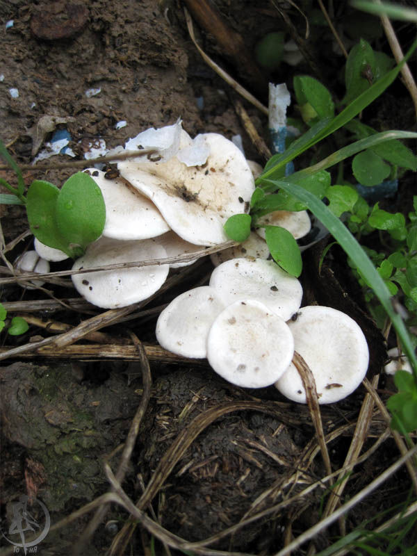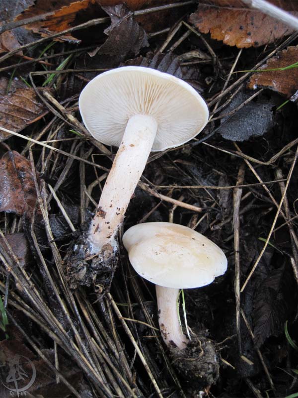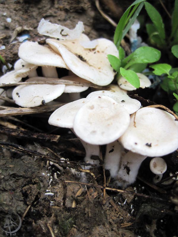 Если да, то Серопластинник горький, Родоцибе горькая, (Rhodocybe mundula) |