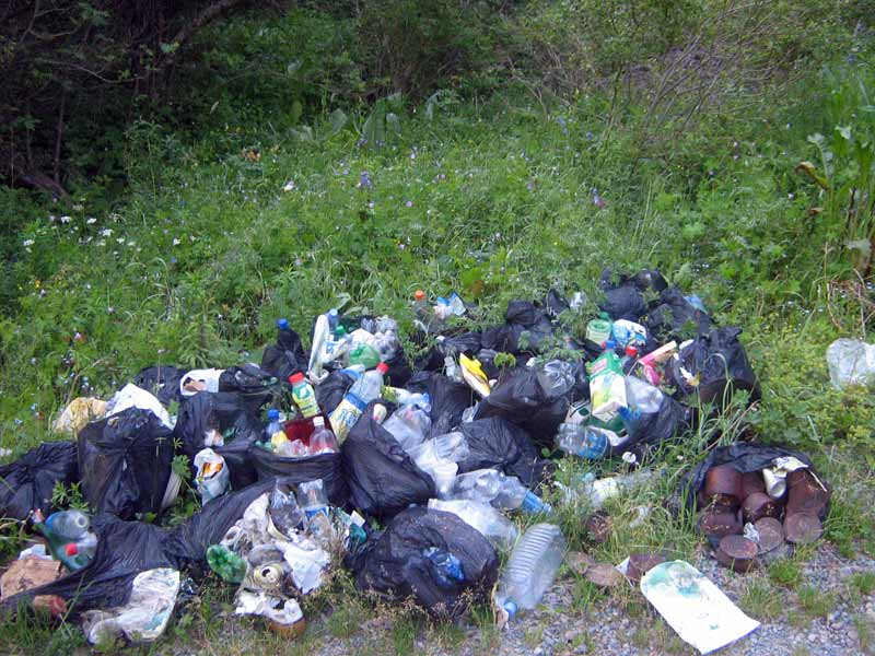 Вот интересный народ, притащить на себе на расстояние в 7-8 км кучу полных банок, бутылок и т.п. сил хватило, а вот кучу пустого унести обратно унести лень. Но посвинячили культурно, упаковали "свинство" в пластиковые пакеты, доберутся лесники на лошадях, вывезут. |