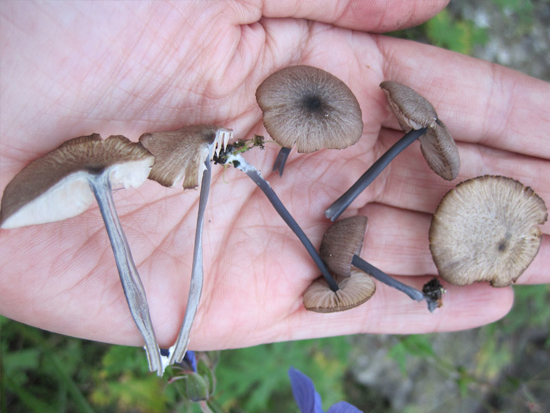 Меланолеука оч маленькая. встречается часто в разных ущельях. иногда полянками по 10 грибов