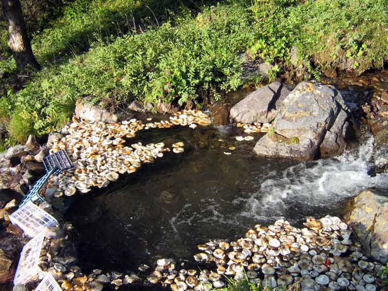 Проще всего сетку натянуть. А для промывки другое сооружение, цилиндр из толстой резины или жести ставится на ровное место глубиной ок 20-40 см а в него по желобу с высоты стекает вода. Через 10-15 мин грибы почти чистые, только надо закидывать небольшие партии
