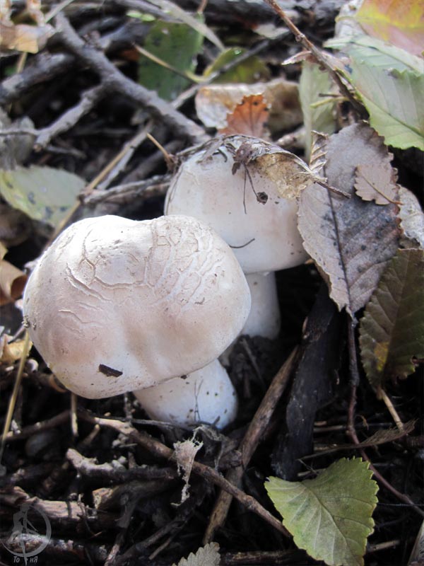 Шляпка: 2-5 см, полушаровидная, затем широкораспростертая, с волнистым тонким краем, покрытая мелкими прижатыми чешуйками или волокнистая, грязно-беловатая, иногда с серо-фиолетово-розовым или буроватым оттенком.