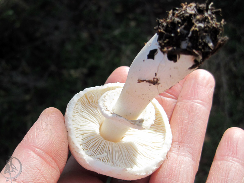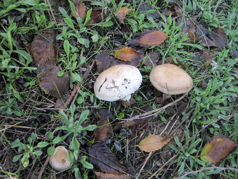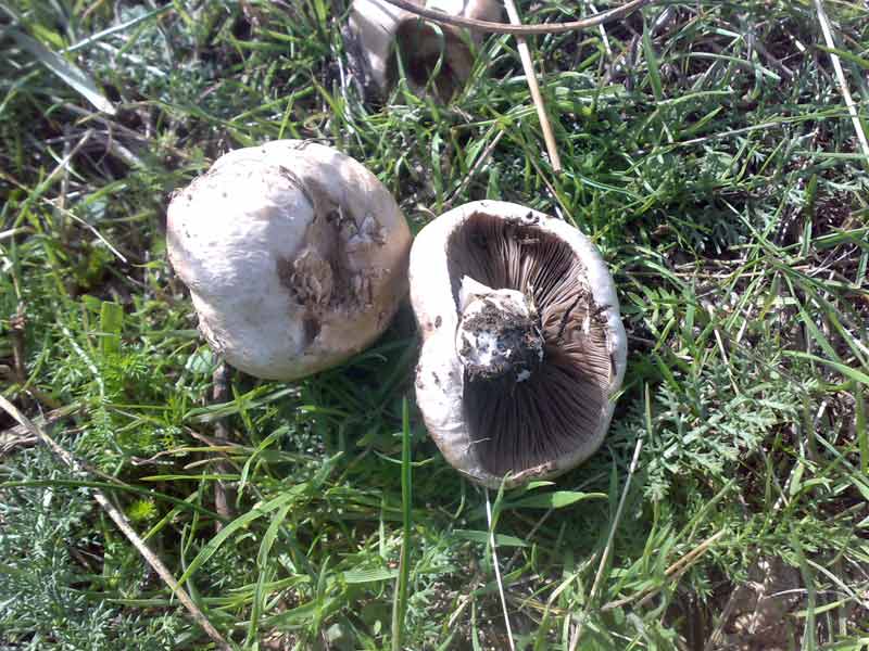 Значит, надо искать среди agaricus с серой шляпкой. А за предыдущие надо у Arfey спрашивать, там вроде шляпка волокнистая, подходит под Шампиньон Пилата, а у Вас гладкая.