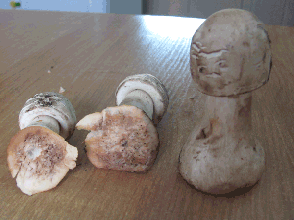 iris написал: Вот еще такие грибочки непонятны. Нашли в роще Баума. Белые, ножка у основания очень широкая, какбуд-то грибница большая наруже и из нее торчат эти грибочки. На срезе сразу же краснеет. Запах грибной сладковатый. Эти предположу гриб-зонтик краснеющий. почитайте здесь http://fungi.su/a...le_id=2088 |