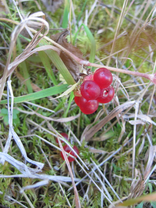Мама называет эту ягодку костяникой. Хотя думаю что неправильно. Ростет на солнечных склонах, еловых. Встречала в основном в Каскеленском ущелье. На заготовку маловато, но полакомится вполне хватит.